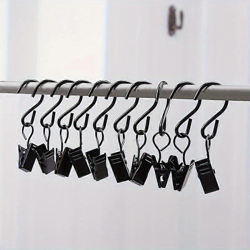 10pcs Black Metal Mini S-Shaped Hooks with Clips - Durable & Versatile for Hanging Curtains, Photos, Party Lights - Ideal for Home & Bathroo