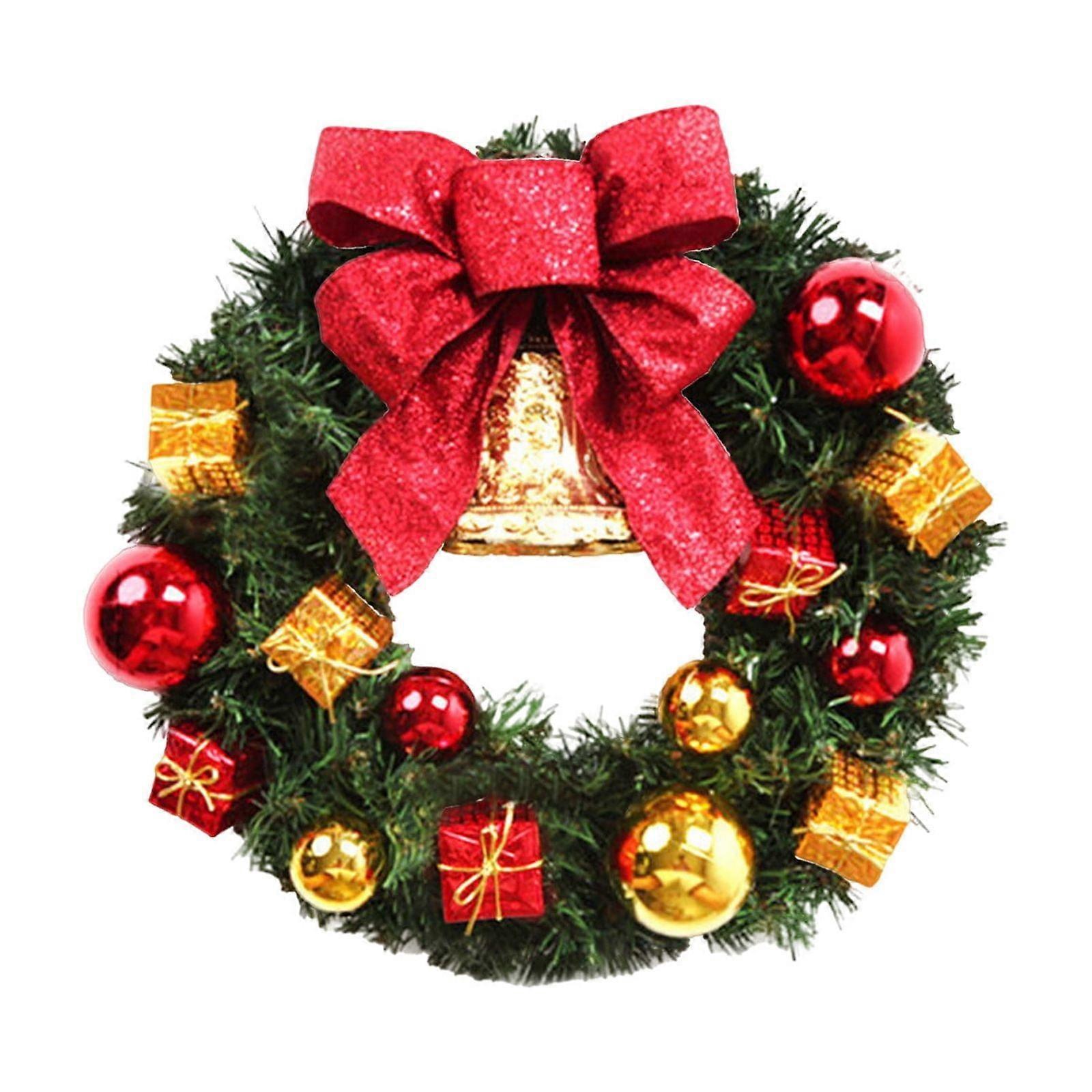 Christmas Bow Bell Pine Needle Wreath with Ball, Outdoor Garland with Lights, Compatible with Christmas Tree, Door, Window, Fireplace Decor