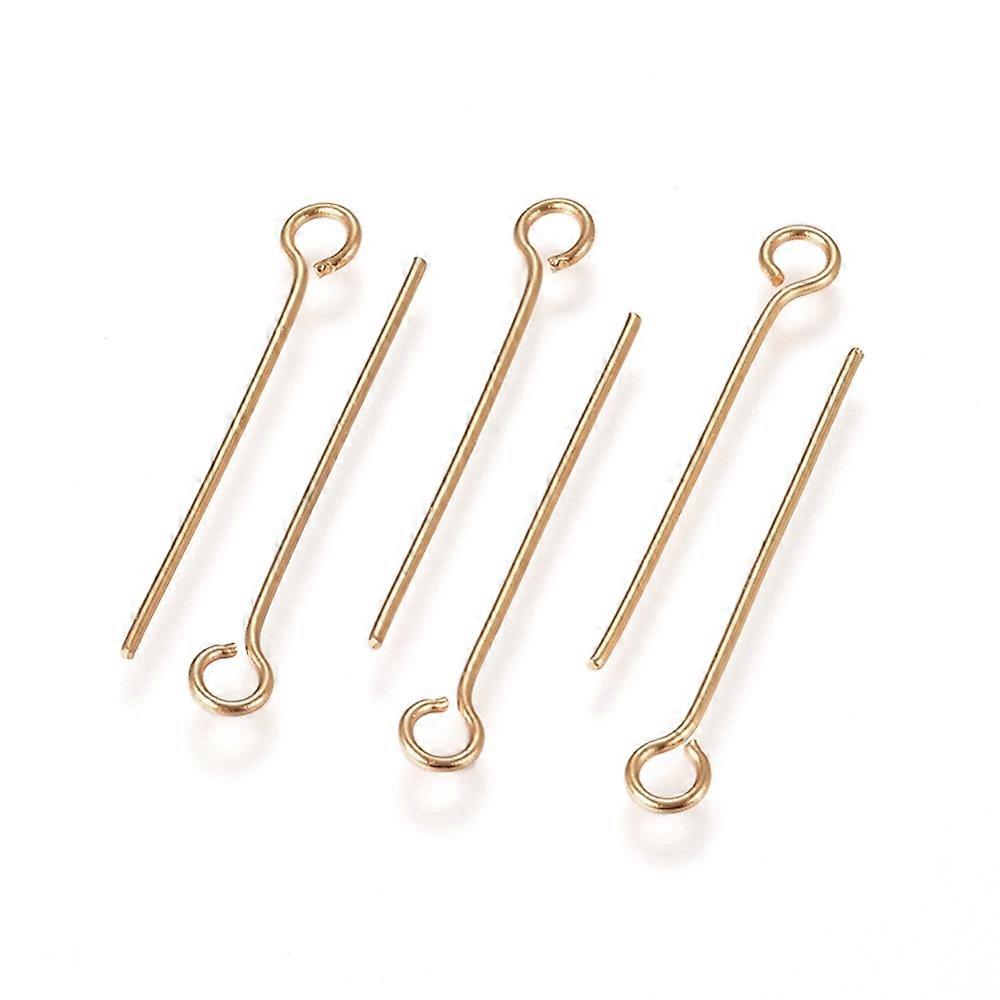 304 Stainless Steel Eye Pins Golden 22x0.6mm Hole: 2mm