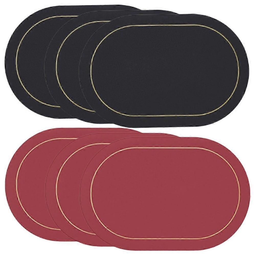 6Pcs Pu Leather Placemats Elliptical Place Mat Waterproof For Dining Table Decor