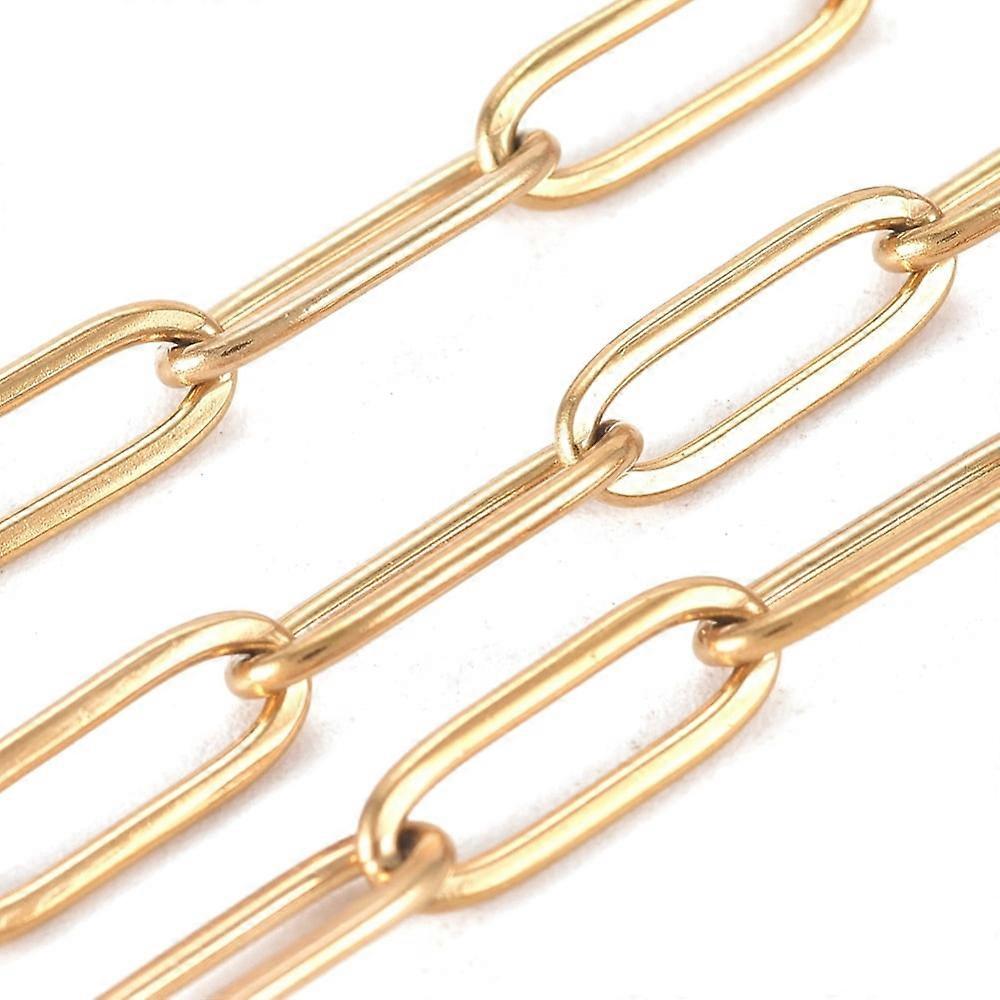 3.28 Feet Vacuum Plating 304 Stainless Steel Paperclip Chains Drawn Elongated Cable Chains Soldered Golden