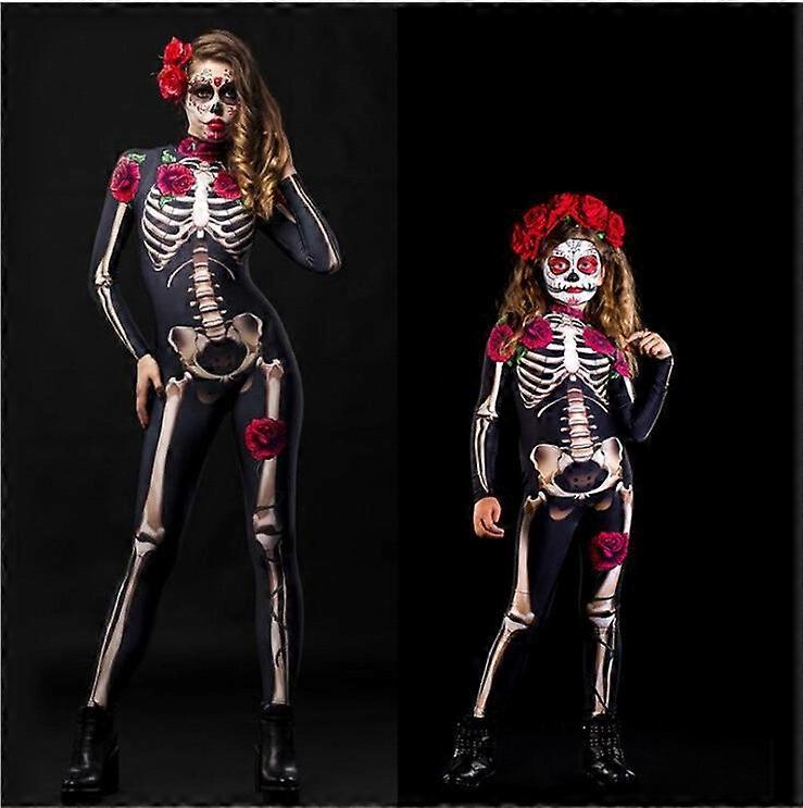 Women Adult Kids Halloween Skeleton Party Costume Fancy Dress Jumpsuit PLUS SIZE