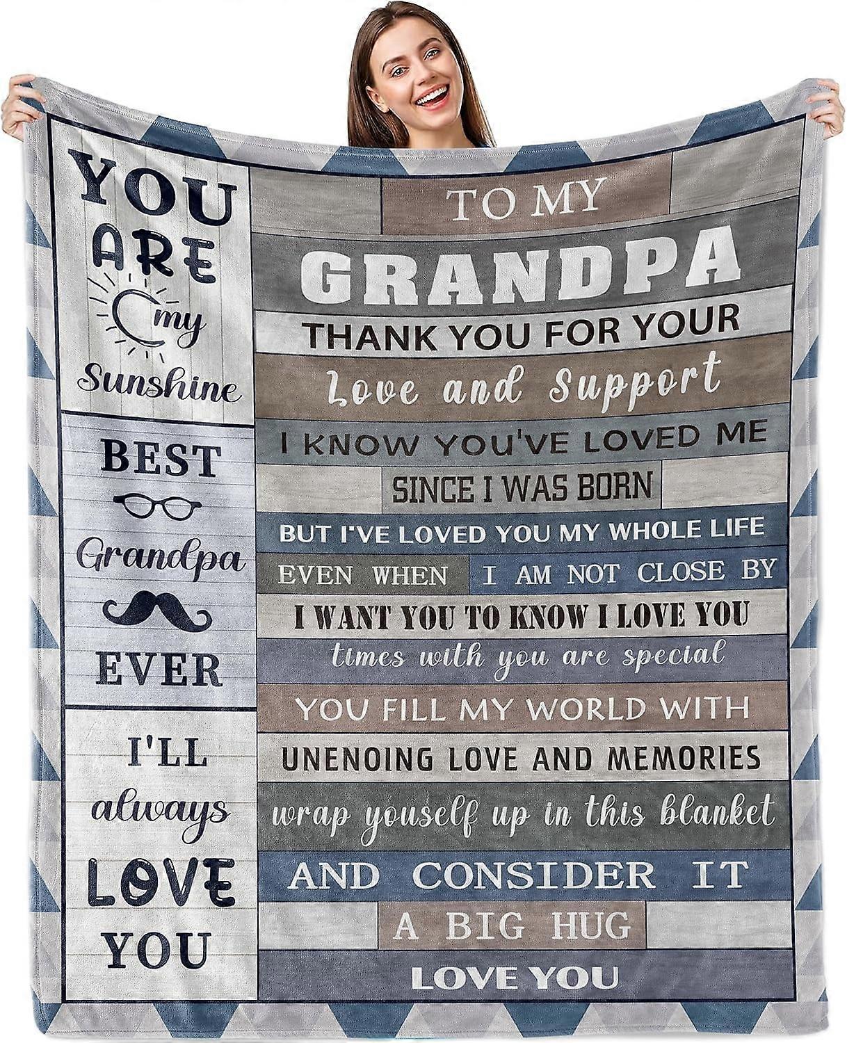 Grandpa Gifts Blanket 60''x50'', Fathers Day & Birthday Gifts for Grandpa from Grandson/Daughter, Great Grandpa Gift Idea