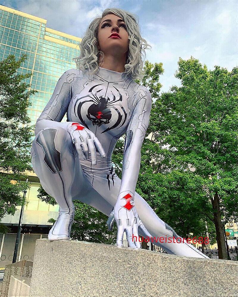 The White Spider-Woman Jumpsuit Costume Spiderman Cosplay Bodysuit Halloween UK