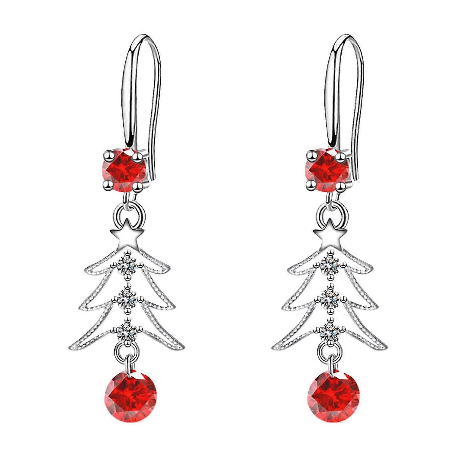 GARENAS Flat Back Earrings Christmas Tree Earrings Christmas Holiday Party Earrings Jewelry Hoop Earrings Women(White)