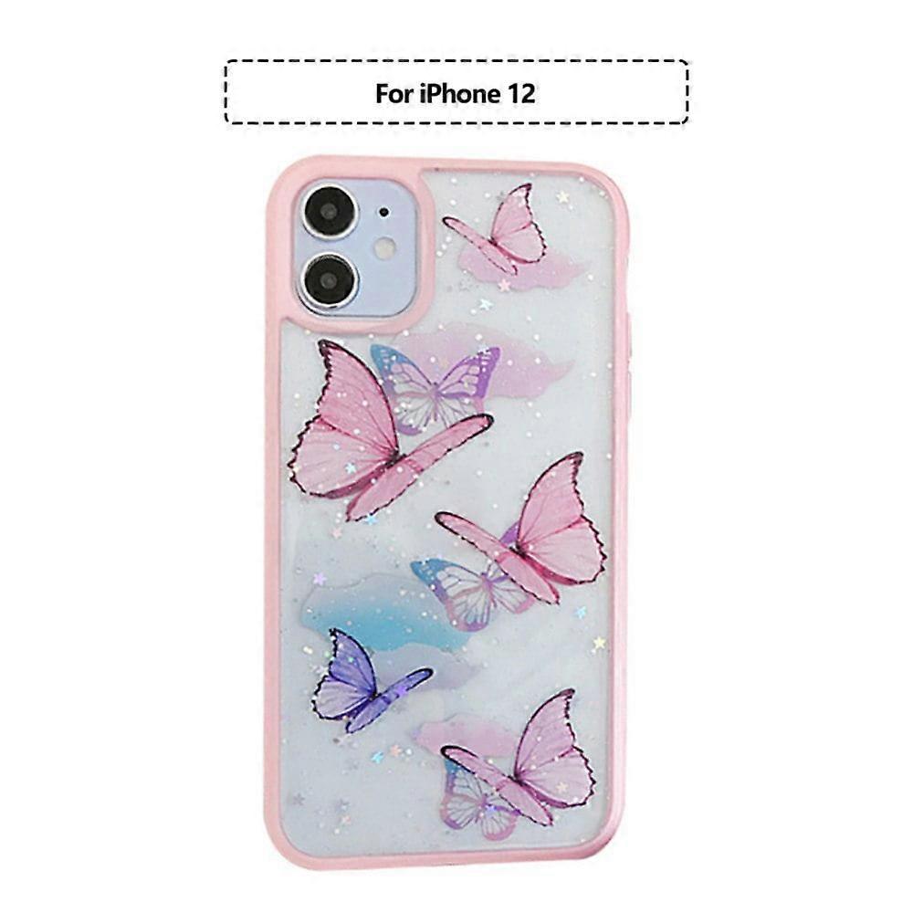 Butterfly Bling Clear Glitter Case for compatible with iPhone 12, Cute Slim Slip Resistant Protective Cover for Women Girls