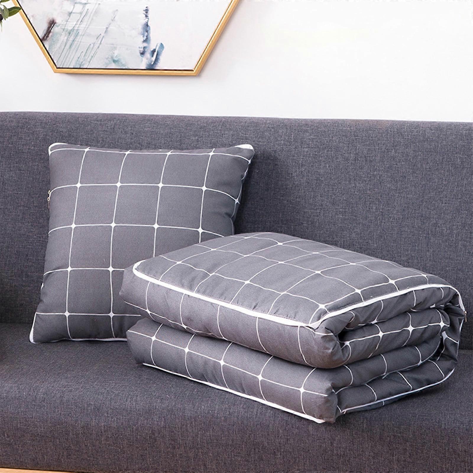 Staron Blanket Cuddle Pillow 2 in 1 Gray - Plush Round Cushion Cover with Attached Quilt, Travel Blanket for All Seasons