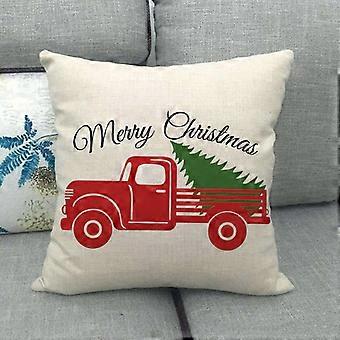 Christmas Pillow Cover Vintage Red Truck Linen Home Decorative Tree Cushion Case