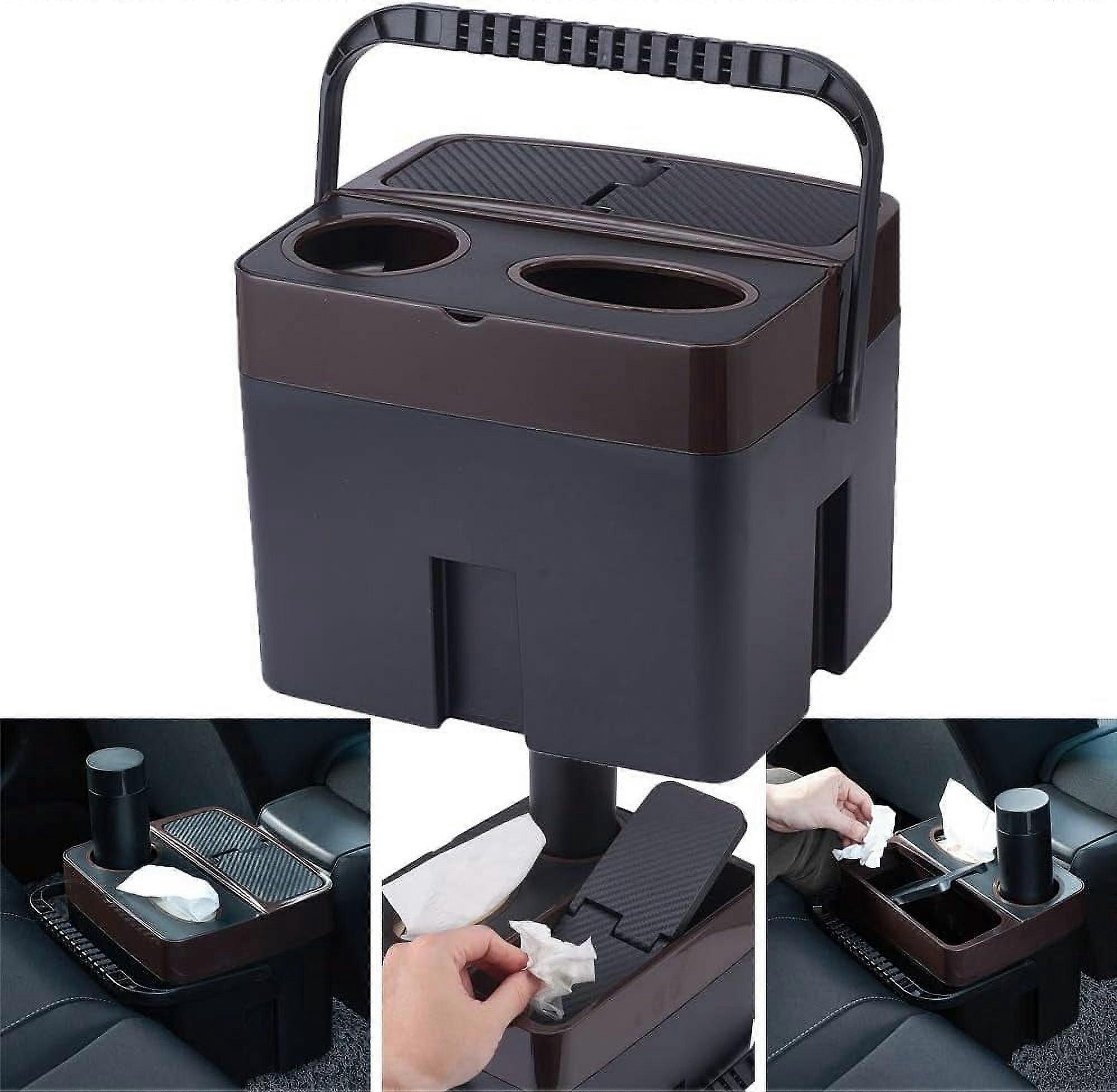 Brown Multi-function Storage Bucket Organizer Car Trash Can Cup Holder Tissue Box Car Interior Organizer