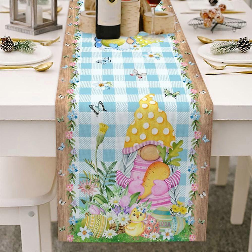 Easter Table Runner 13x70in, Rustic Truck Wood Cotton Linen, Farmhouse Style Blue Stripes Bunny Eggs, Compatible with Spring Wedding Party Dinning