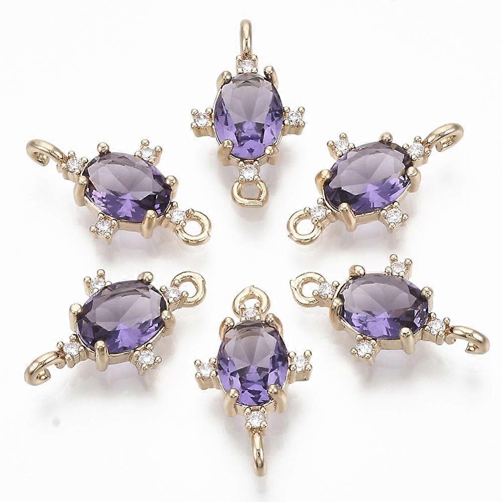 2pc Glass Links connectors with Brass Micro Pave Cubic Zirconia Faceted Oval Light Gold Blue Violet 17.5x10x5mm Hole: 1.2mm DIY Material: Brass, Glass, Cubic Zirconia Color: Blue Violet Metal Color: Light Gold Shape: Oval Usage: Links