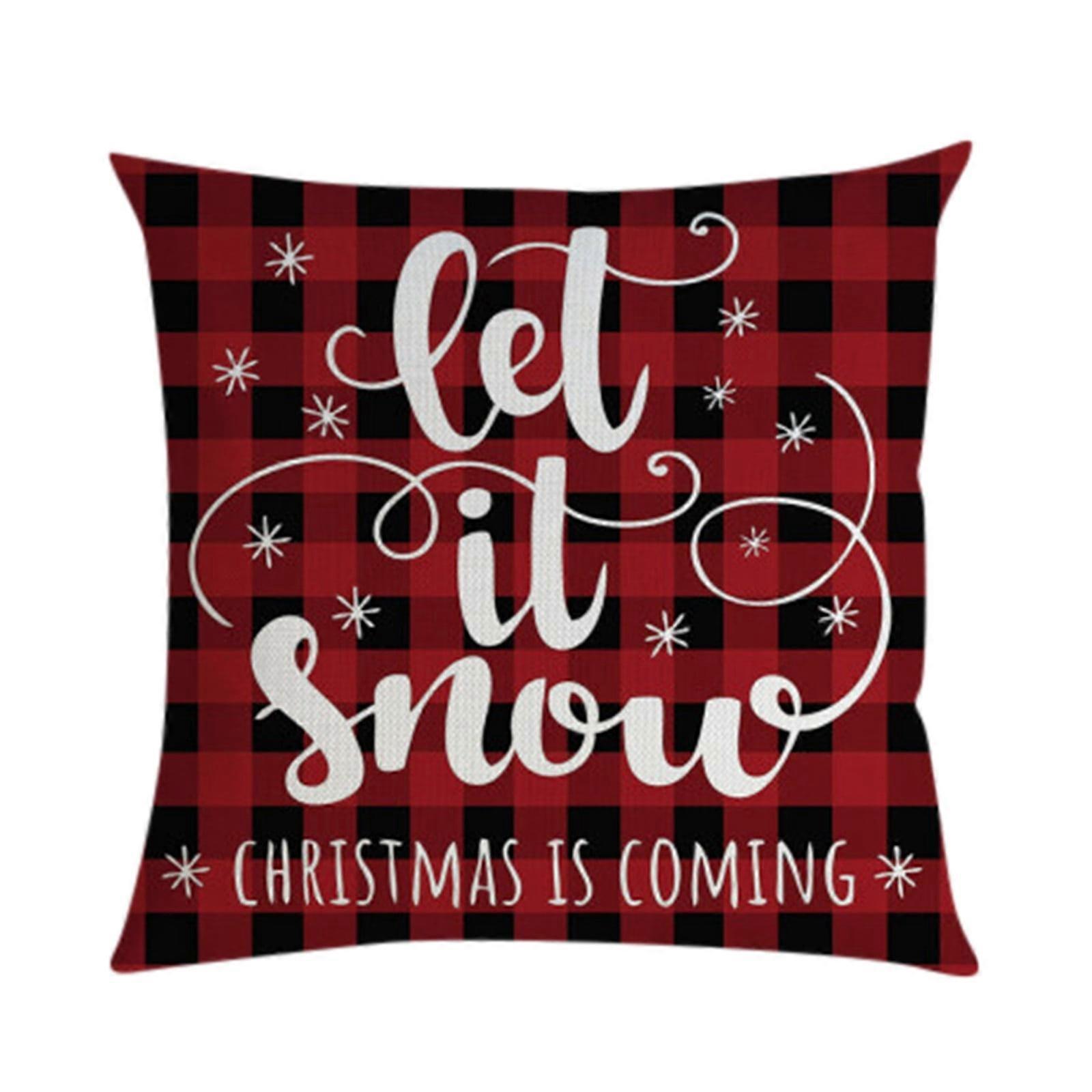 Ympuoqn Indoor Christmas Decorations, 18x18 Red & Black Plaid Throw Pillow Covers with Merry Christmas Print, Linen Cushion Covers for Xmas Home &