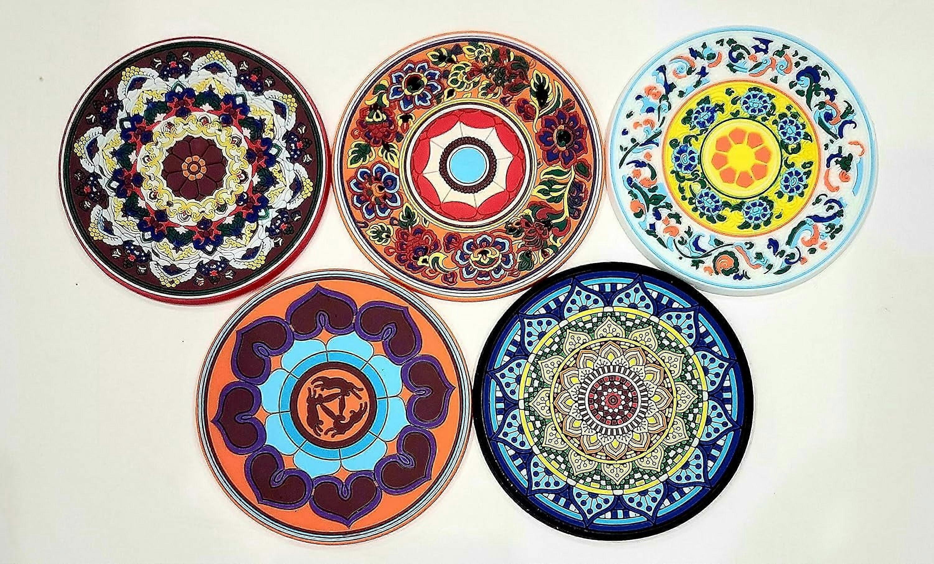 Mosaic Silicone Drink Coasters - Package of Five Non-Skid Absorbent Drink Coasters