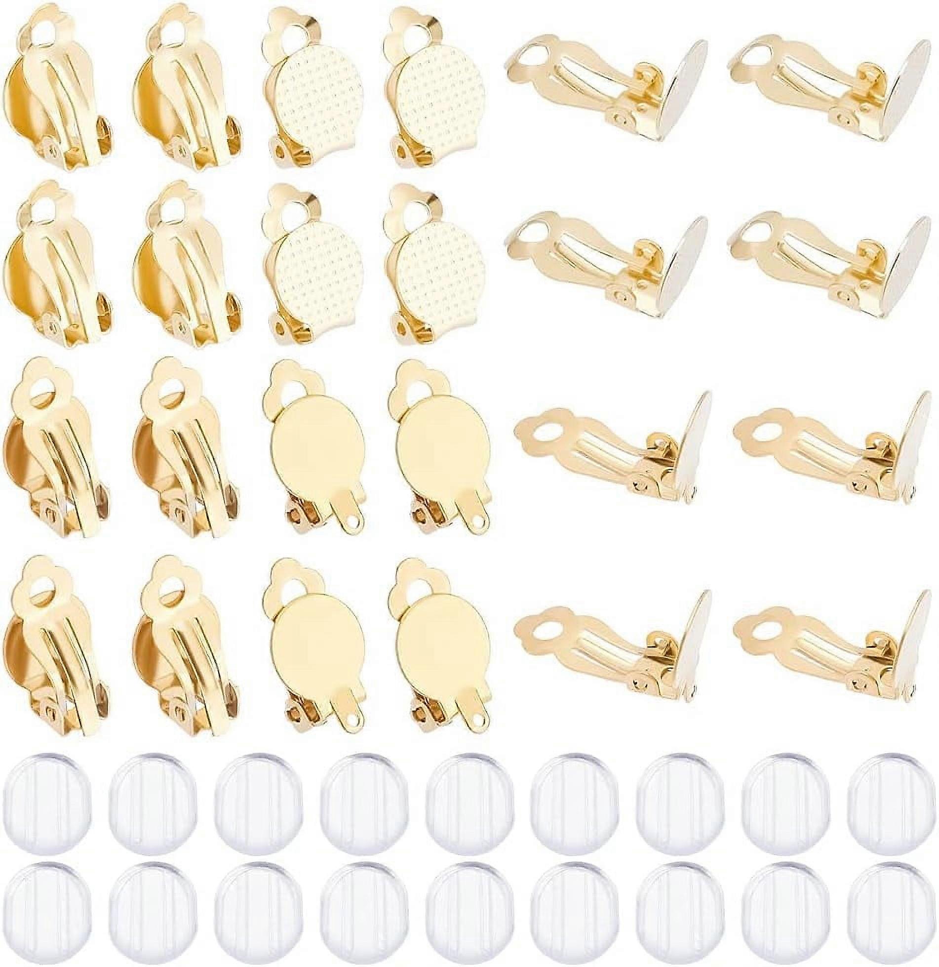 40pcs Clip-on Earrings for Non-Pierced, 304 Stainless Steel Converters with Silicone Pads, Flat Round Tray, DIY Earring Making