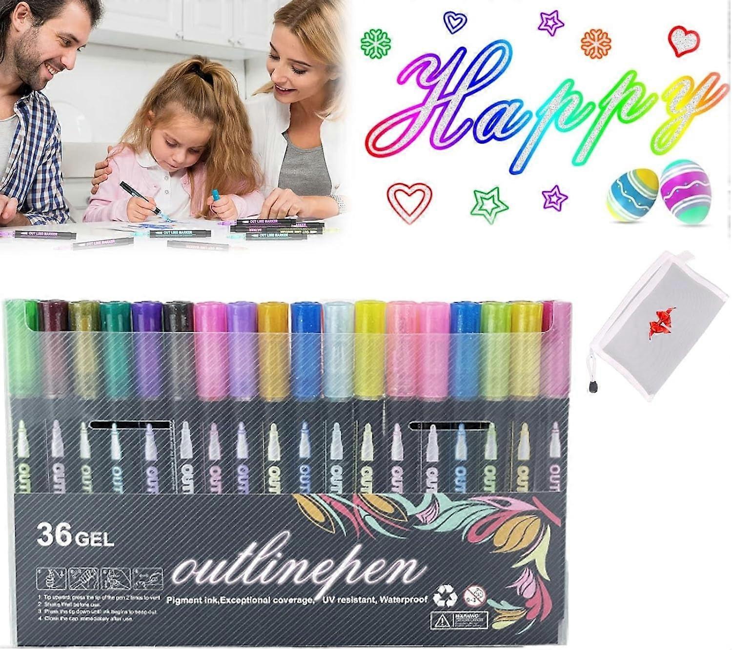 Product DescriptionFeatures: - Multiple colors: 12/24/36/48 rich colors are available to meet your various painting needs. - Double-line design: The biggest feature of this pen is the double-line design, which can draw two parallel lines at the same time, making your work more three-dimensional and layered. - Wide range of applications: Suitable for various artistic creations such as handbooks, greeting card making, painting, graffiti, etc. Specifications: Name: Shimmer Outline Marker Set Shell material: plastic Weight: 9g/pc Applicable scenarios: painting, graffiti, calligraphy, DIY art crafts Packing list: 12/24/36/48pcs*Double Line Outliner Markers + Pen Bag*1 Notes: 1. Due to manual measurement, there may be errors. 2. Due to lighting and other issues, the color of the actual product may vary. Please refer to the actual product for details. Thank you for your understanding. About service: We value the suggestions and feedback of every user, and we will provide quality service. If you are not satisfied with the product after receiving it, you can contact us at any time. We hope you will enjoy our products with satisfaction and wish you a happy life. Gift for Creative Minds: The 12/24/36/48 Colors Double Line Outliner Markers are perfect gifts for both kids and adults, making them an ideal choice for occasions like Valentine's Day, Easter, Christmas, and more. These paint pens acrylic markers inspire creativity and artistic expression, ensuring that everyone will enjoy using these vibrant dual brush marker pens Innovative Writing Effects: Featuring a unique double line function, our outline pens metallic allow you to create stunning art with ease. When used on light or white paper, you'll see two lines simultaneously—one metallic silver and one colorful—and on dark surfaces, only the striking silver color shines through, making your artwork truly pop Brilliant Glitter and Color: Experience the strong glitter effect with our shimmer doodle outline pens. With 12/24/36/48 bright colors that glide smoothly from the tips, these self outline metallic glitter doodle drawing markers pens add an enchanting brilliance to your projects, transforming simple designs into eye-catching masterpieces Versatile Usage for All Crafts: Our double line outline markers are perfect for a wide range of DIY crafts, including scrapbooking, photo albums, and greeting cards. They work beautifully on various surfaces such as wood, glass, metal, plastic, and even ceramic, allowing you to add a sparkling embellishment to any creative endeavor Safe Quality: Crafted with a durable, wear-resistant tip, these paint pens ensure smooth writing without compromise. Being odorless, waterproof, and environmentally friendly, our dual brush marker pens can be safely enjoyed by both adults and children, making them a worry-free addition to your art supplies