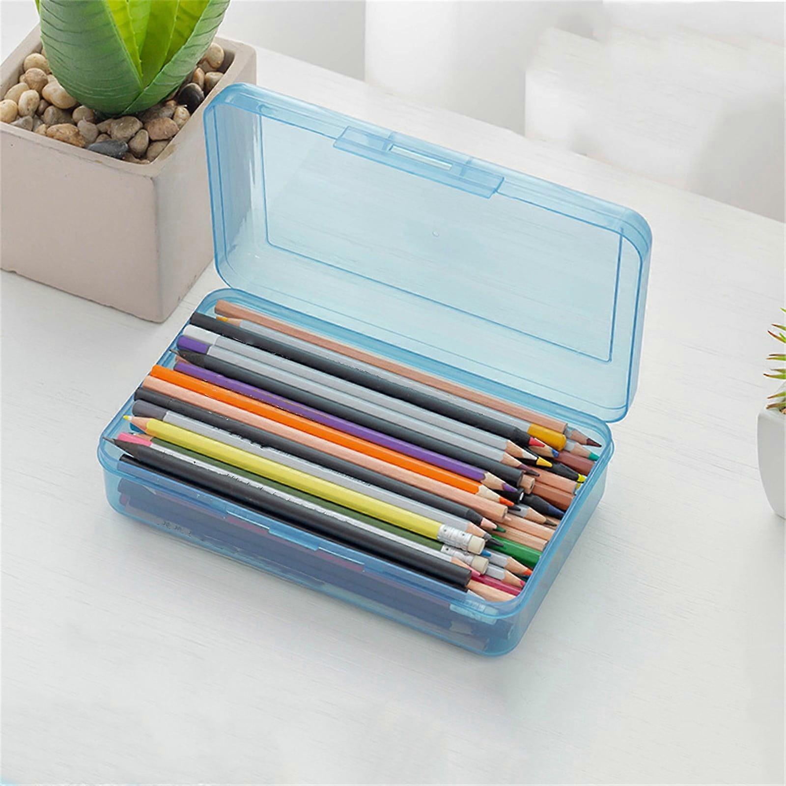 Penkiiy Pencil Box, Clear Plastic Case with Snap-tight Lid, Large Capacity Stackable Storage Box for Office Supplies