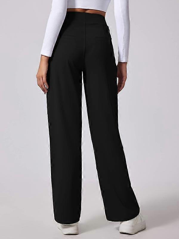 Women's lightweight, drapey high-waisted wide-leg relaxed straight trousers Outdoor sports casual pocketed wide-leg trousers Premium solid-c