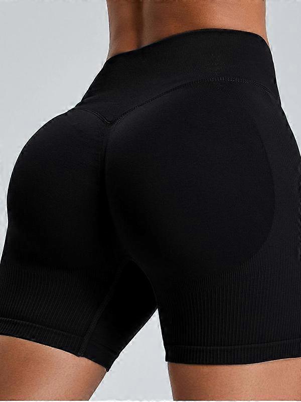 Women's Solid Color Seamless Sports Shorts, High Waist Tummy Control Skinny Shorts, Ladies Sportswear for Indoor Outdoor Wear, Gymclothes