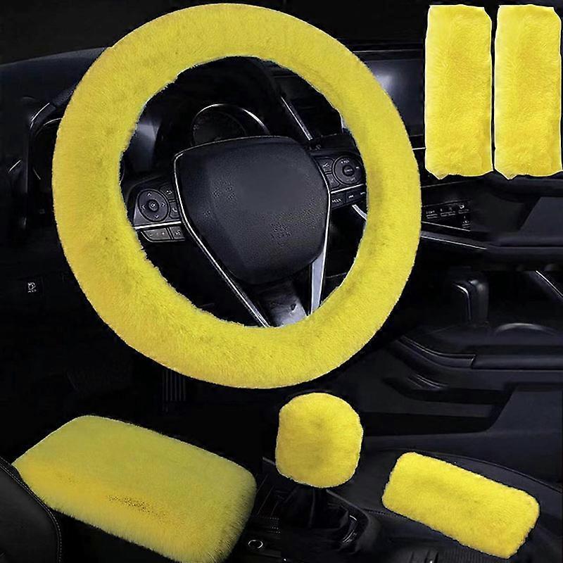 6PCS Pink Red Black Soft Plush Car Steering Wheel Covers Seatbelt Shoulder Pad Universal Fit Car Interior Decoration Accessories