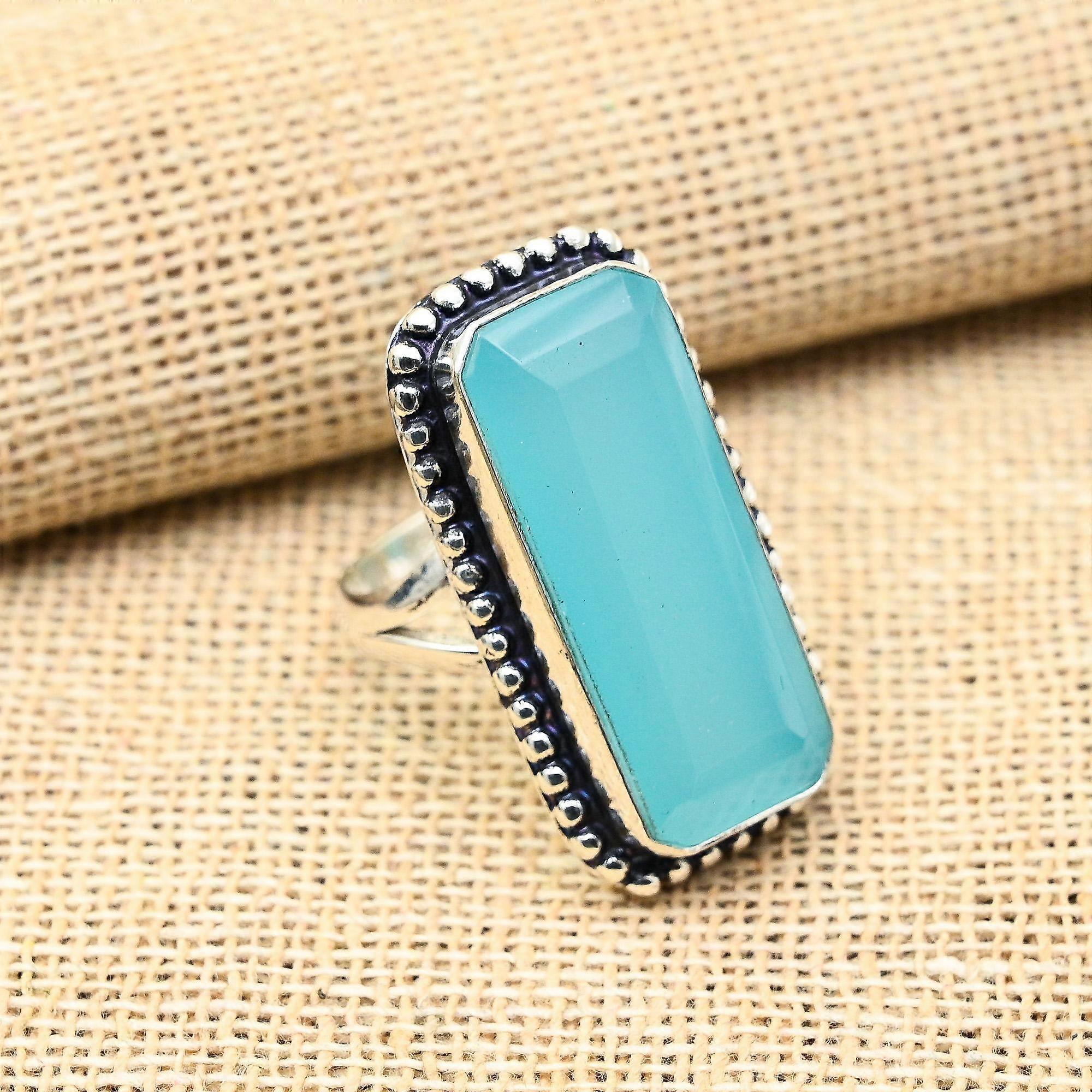 Awesome Blue Chalcedony Gemstone Handmade Jewelry 925 Solid Sterling Silver Ring For Love