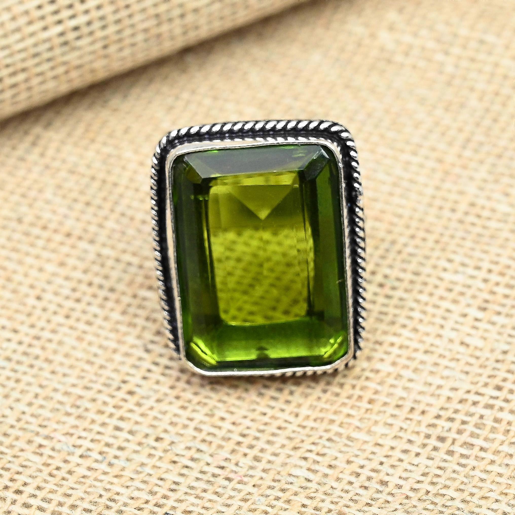 Unique Peridot Gemstone Handmade Solid 925 Sterling Silver Birthday's Gift Ring Jewelry
