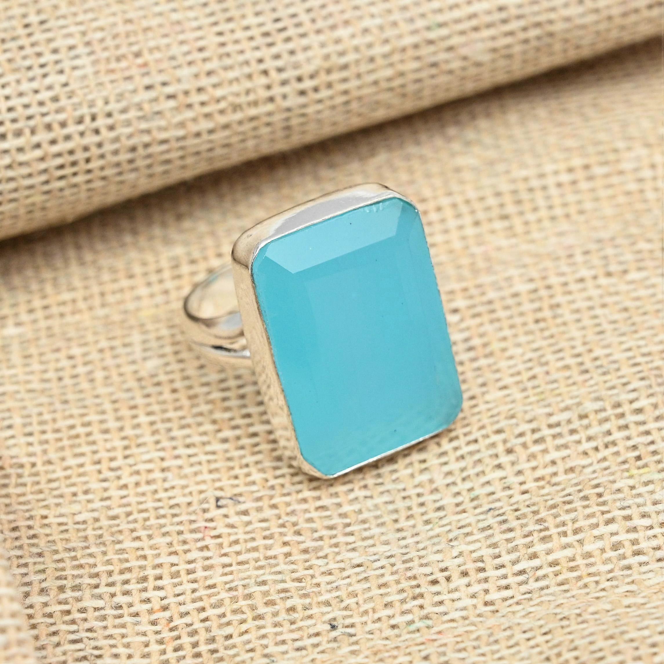 Faceted Blue Chalcedony 925 Sterling Silver Handmade Jewelry Attractive Gift Ring