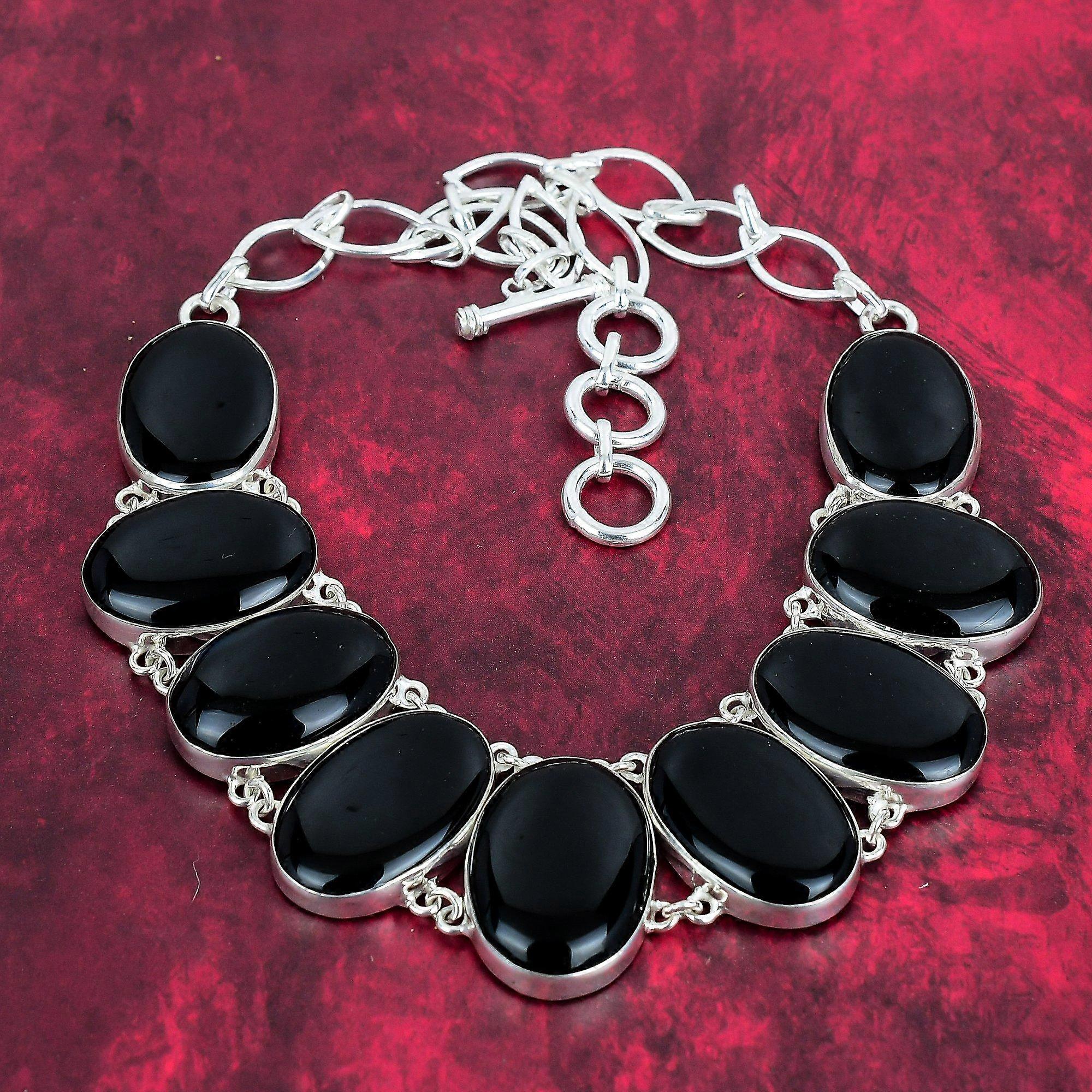 Black Onyx Handmade Gemstone Necklace, 925 Solid Sterling Silver Necklace, Unique Design Jewelry Adjustable Chain Necklace Wedding Gift