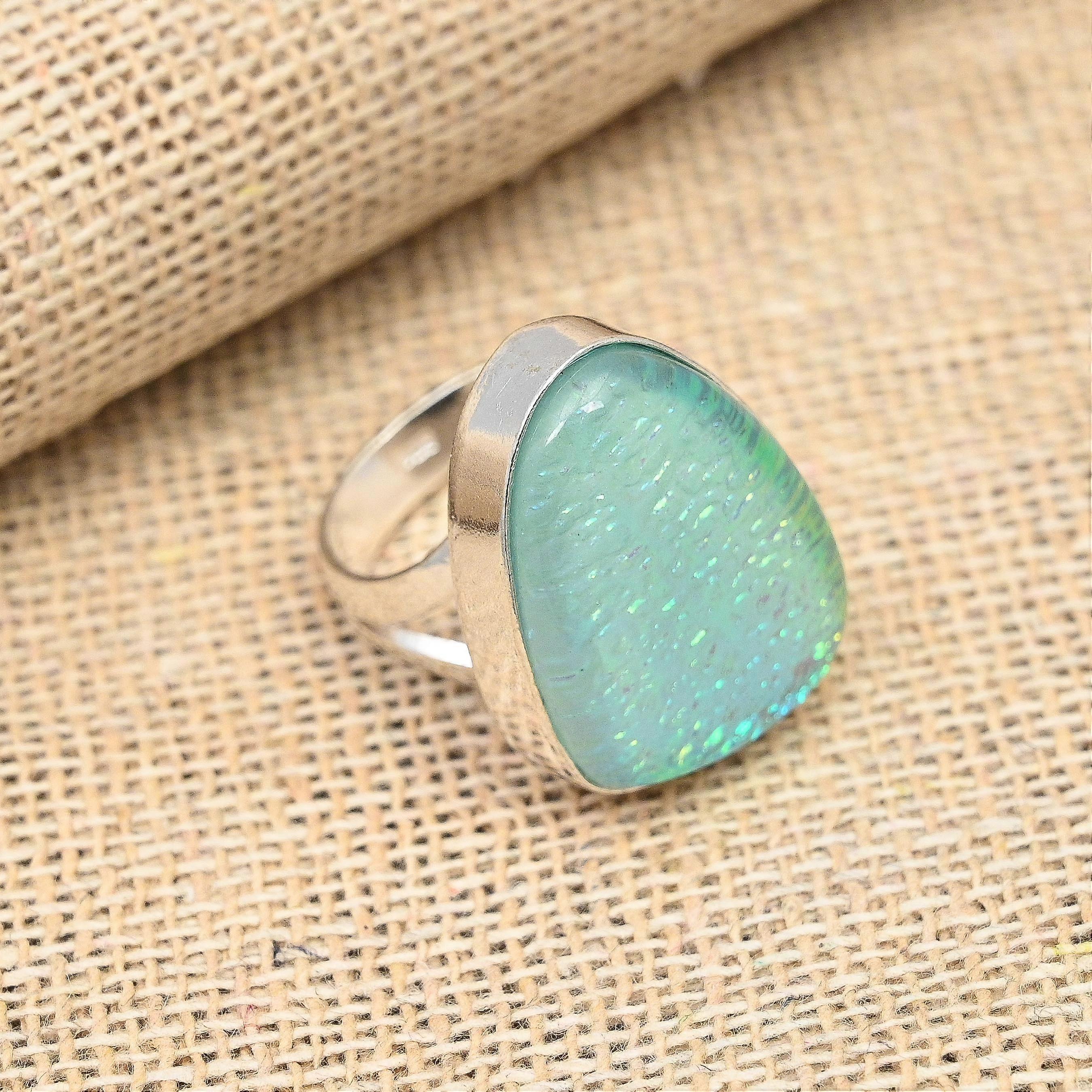 Blue Australian Triplet Opal Gemstone Handmade Solid 925 Sterling Silver Ring Jewelry