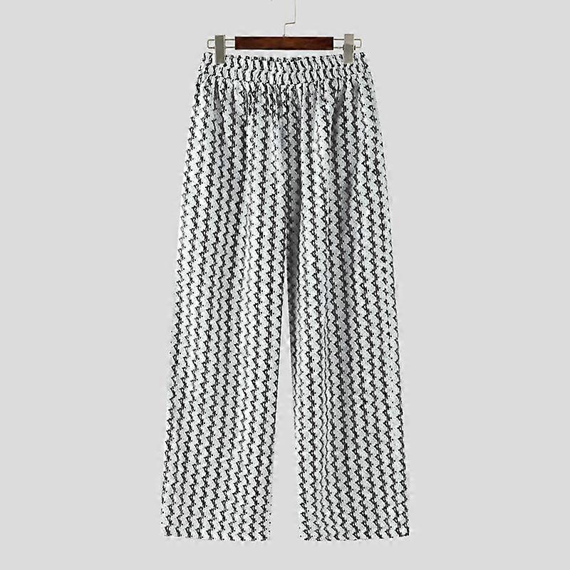 INCERUN Men Elastic Waist Striped Print Casual Holiday Long Straight Pants Trousers