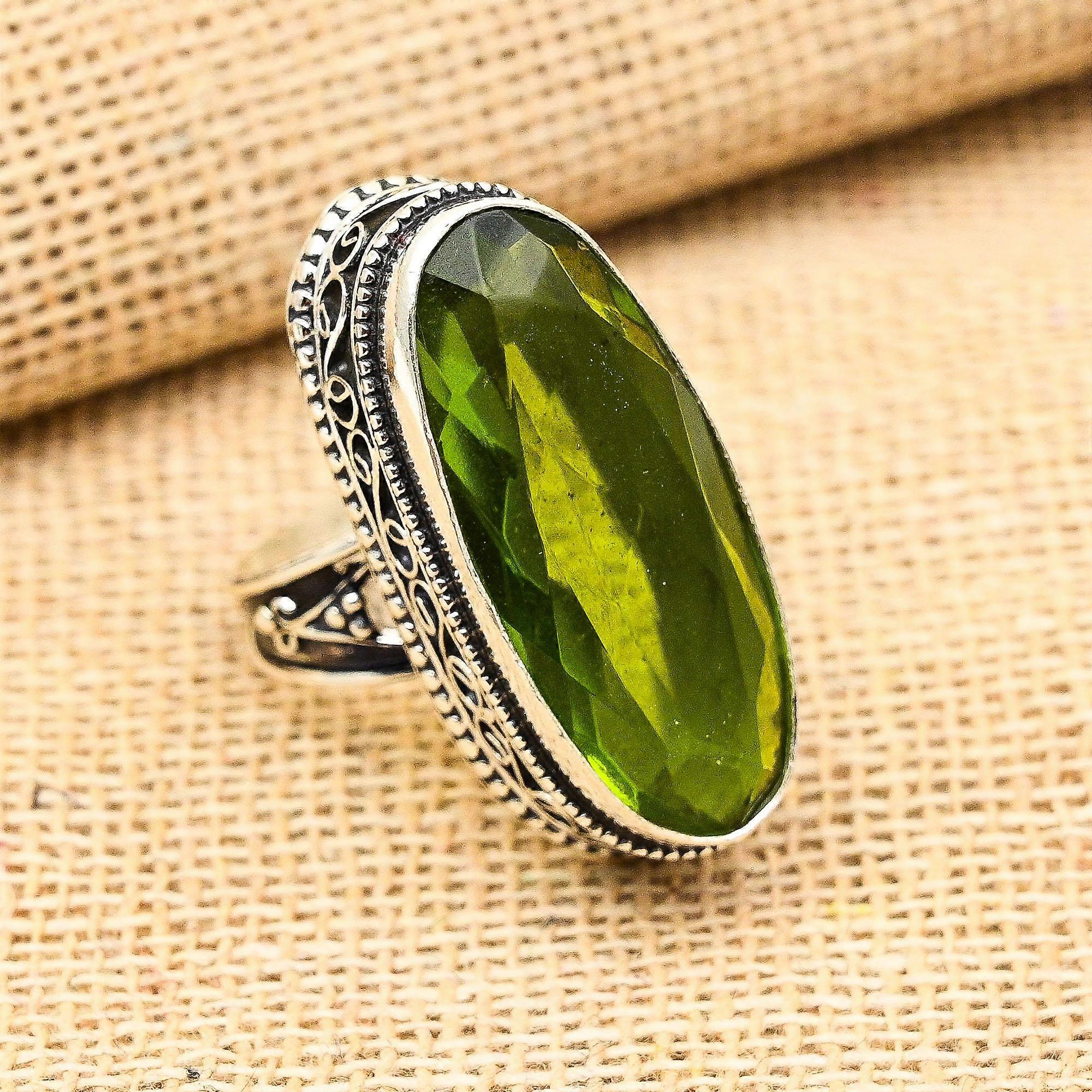Peridot Gemstone Handmade 925 Sterling Silver Ring Jewelry For Memorial Day
