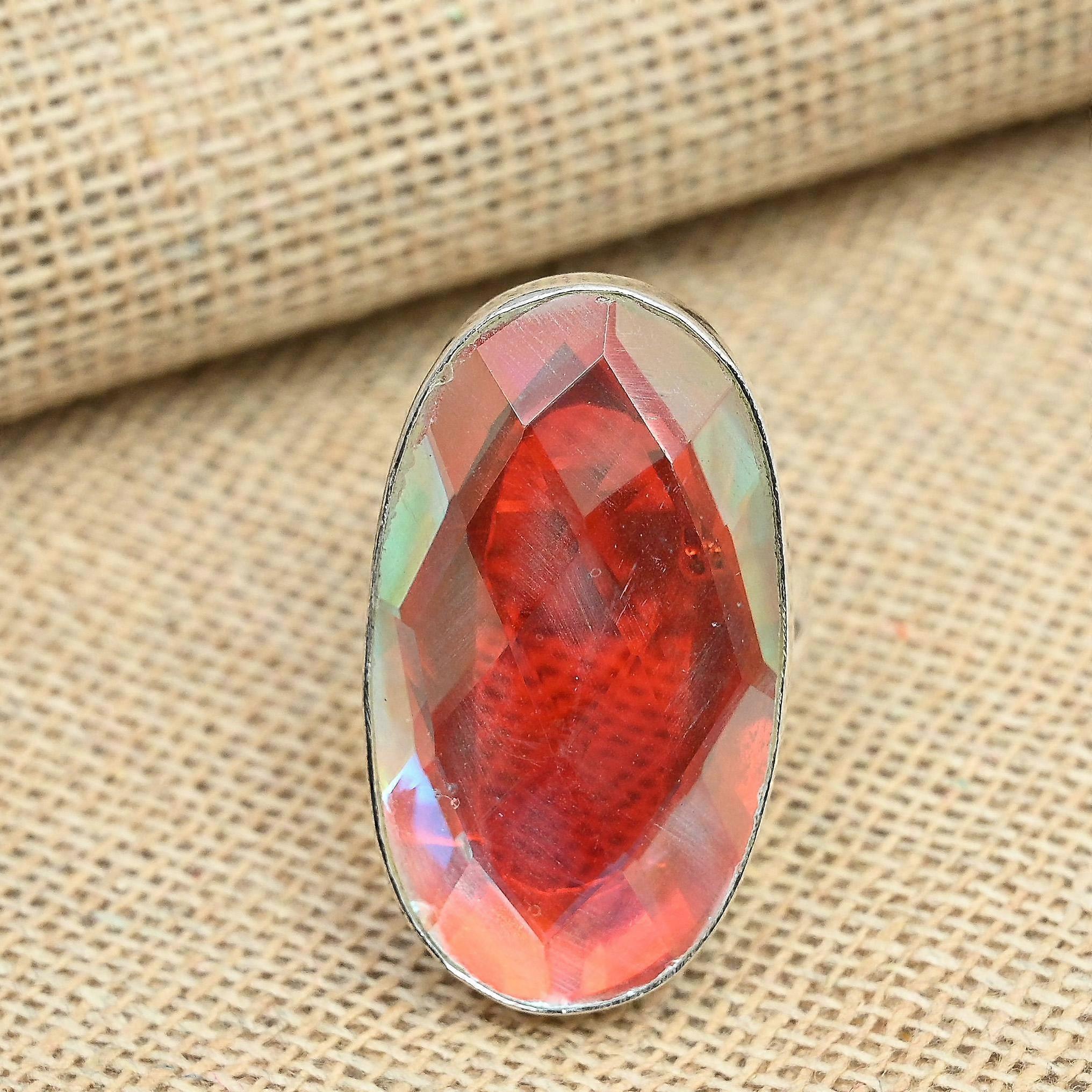Faceted Rainbow Mystic Topaz Gemstone 925 Sterling Silver Handmade Design Ring Jewelry
