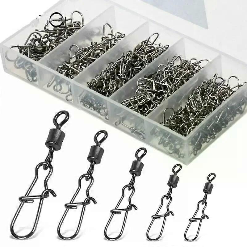 50pcs Fishing Connector Pins Set with Bearing Rolling Swivel Snap Fishhook Lure Accessories #4 #6 #8 #10 #12 for Angling