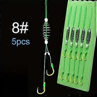 5pcs Carp Fishing Baits Hook Lure Trap Glow FishHooks with Spring Feeder and Glow Fishing Beads Pre-tied Baits Hook