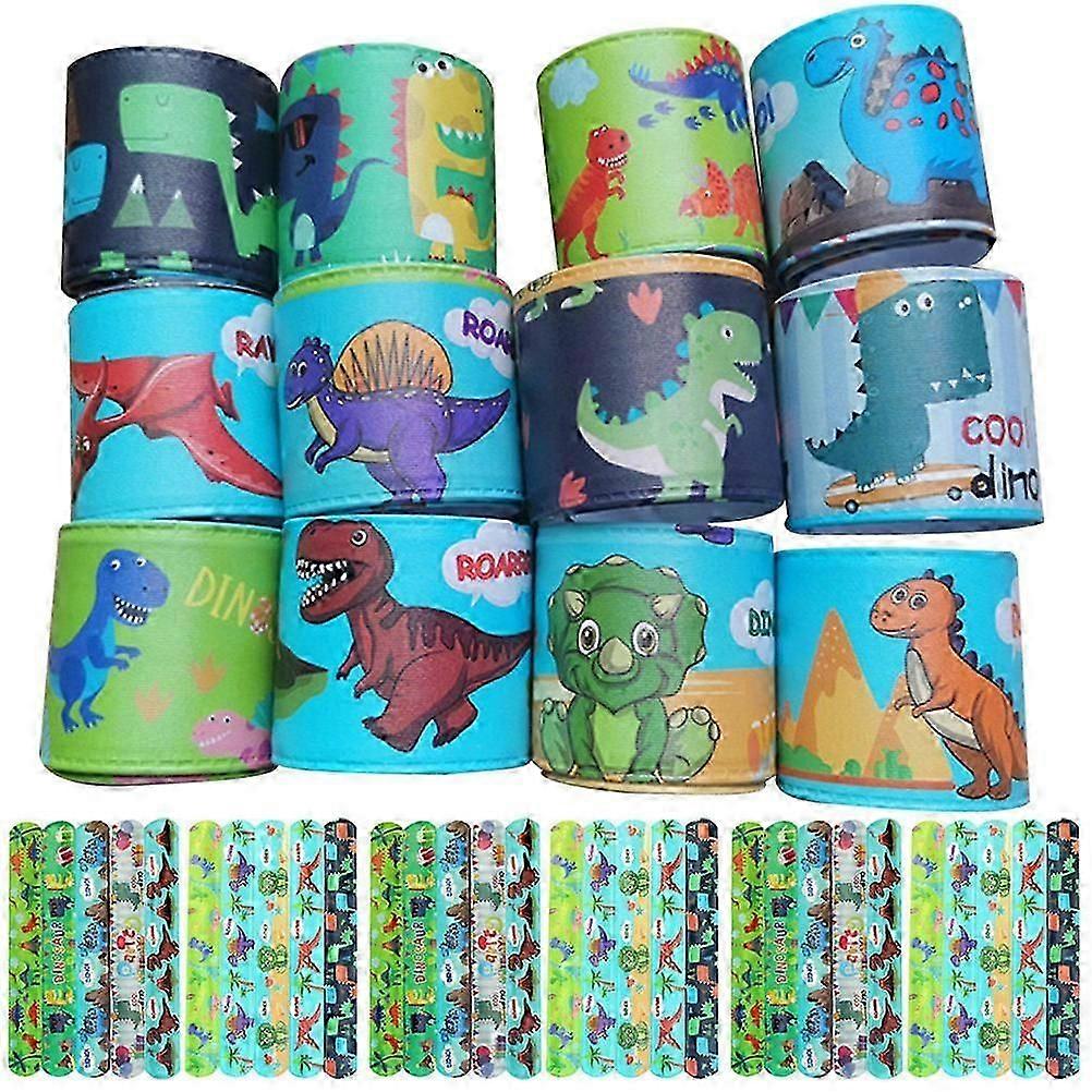 Cartoon Dinosaur Slap Bracelets 48-Pack Kids Party Toys 22x3cm