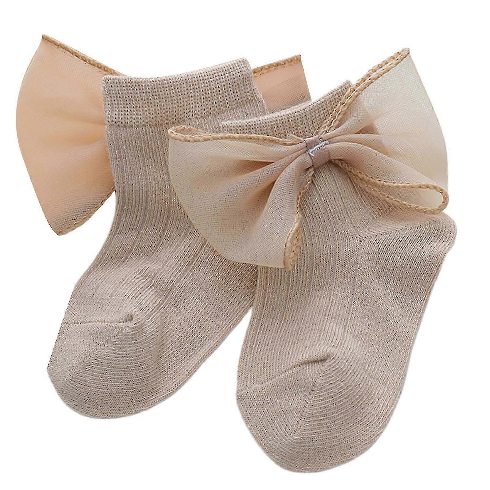 Non-Slip Baby Ankle Socks with Lace Bow, Breathable Soft Infant Socks for Spring, Yellow