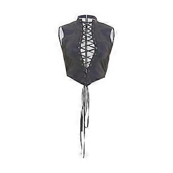 Autumn/Winter Women's Sexy Hollow-Out Strappy Crop Top Reflective Laser Iridescent Pants Set