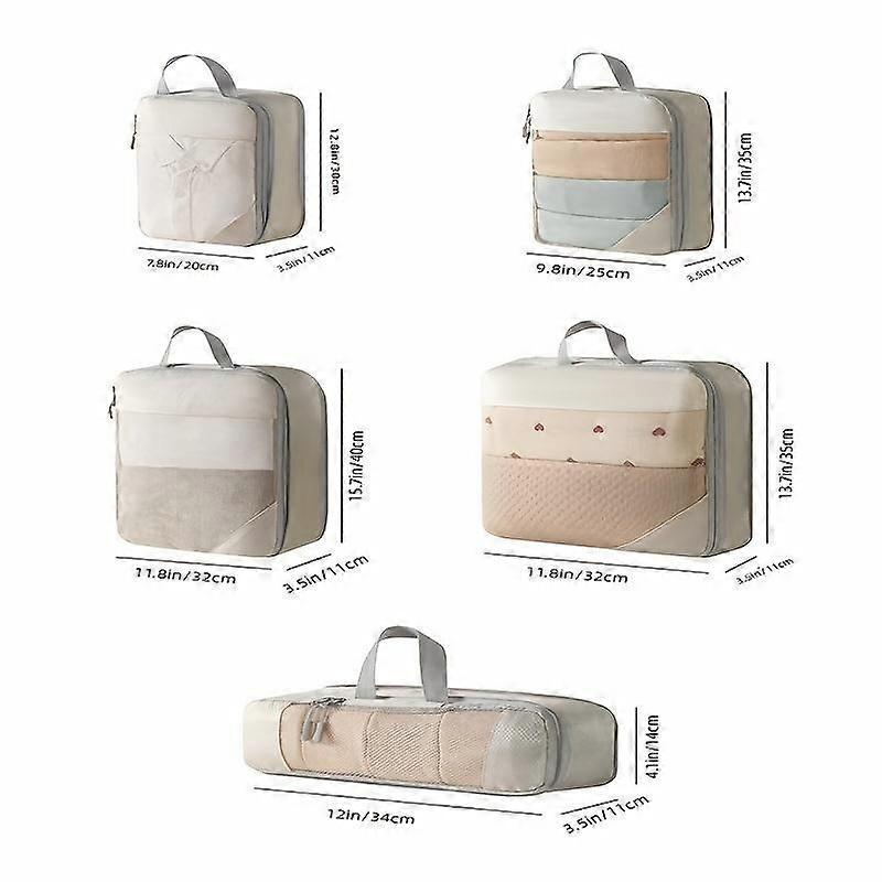 5-Piece Compression Packing Cubes Set for Travel, Lightweight Expandable Storage Bags, Essential Travel Accessories, Also Suitable for Beddi