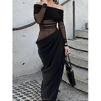 【Plus Size】 Off The Shoulder Ruched Cut Out Sheer Mesh Dress, Elegant Long Sleeve Dress for Party Club Dating Wear, Women's Plus Clothing fo