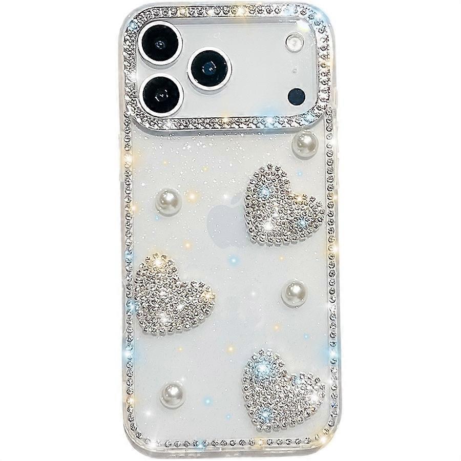 Pearl Heart Glitter Back Case Phone Case Cover for iPhone 17 Pro 17 16 14 13 15