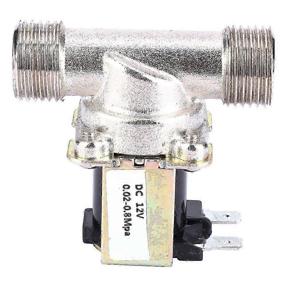 Feature:1. This is a normally closed type solenoid valve for water inlet control.2. High quality brass valve body, corrosion resistant and durable in use.3. Electroplating surface treatment to prevent rust.4. Precision threads ensure secure connection and good seal performance.5. Solenoid type valve control, sensitive switching, stable and reliable.Specification:Item Type: Guided (One-Way) Solenoid ValveRated Voltage: DC12VRated Current: 300MAWorking Mode: Short-Term Quota System (Intermittent Period Work System)Thread: G1/2 Fluid: (0-55C) WaterWater Pressure: 0.02-0.8MPaLife: >100000 timesInsulation Class: Class EAltitude: 2500mAmbient Temperature: 0-40CRelative Humidity: <95%RH (25C)Water Flow Characteristic:Water Pressure (MPa) 0.02 0.1 0.3 0.8Flow (L/min) >5 >11 >18 >32Package List:1 x Solenoid Valve