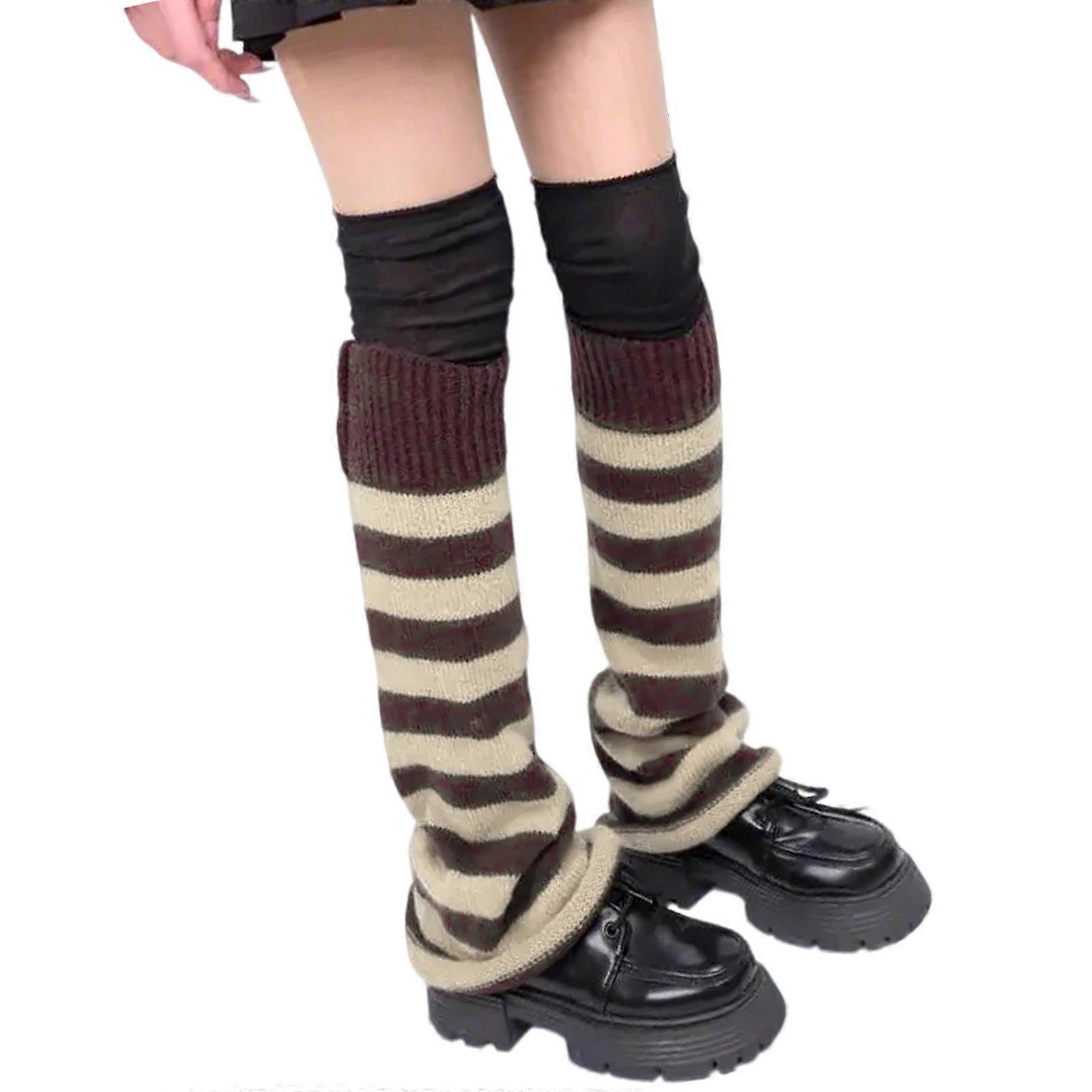 Women Leg Warmers Socks Subcultures Punk Knitted Striped Flared Boot Covers with Over Knee Thigh High Stockings Set Multicolor