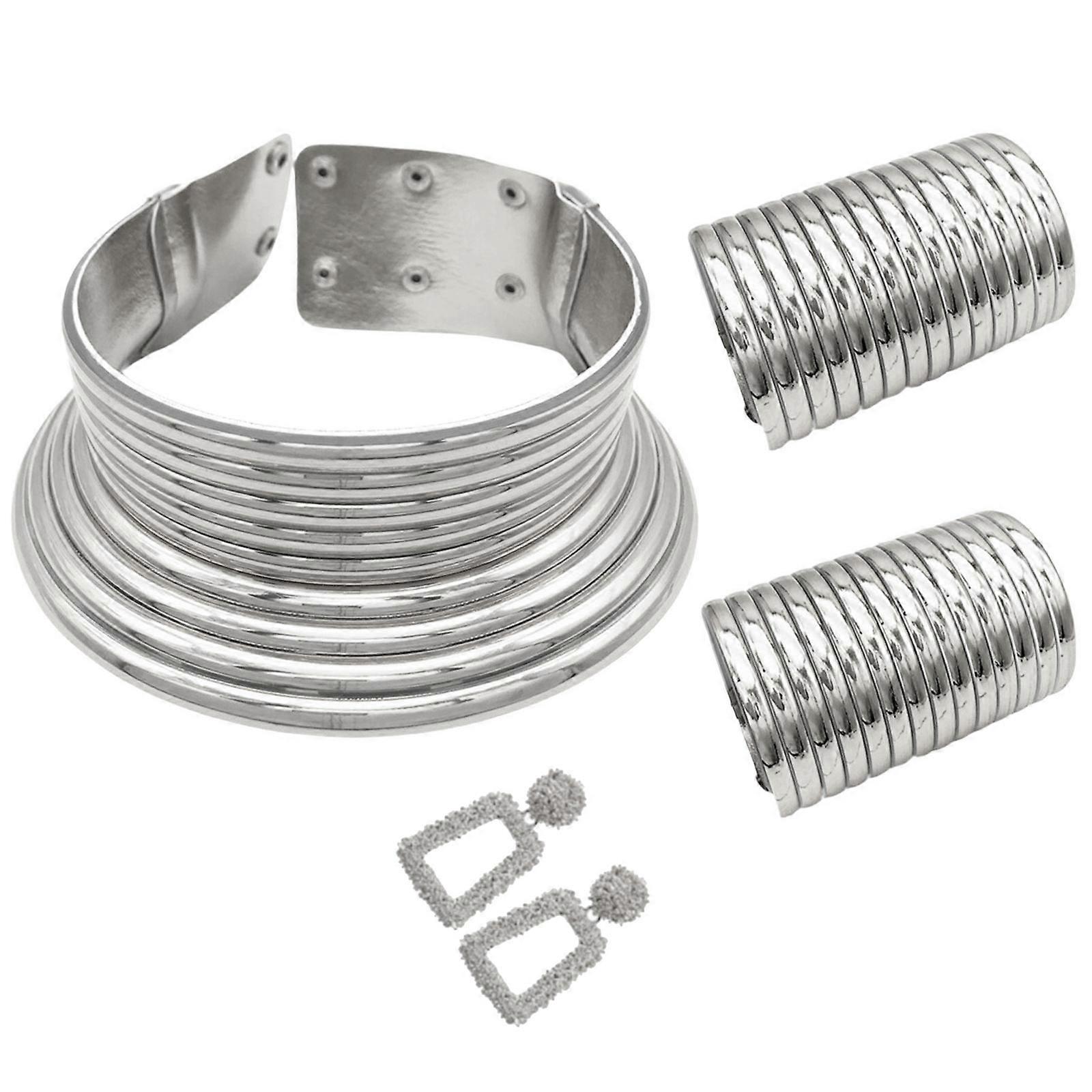 Fashionable Long Neck Tribal Choker Set Fashionable Choker Necklace Earrings Set Ethnic Style Long Necked Neck Jewelry Multicolor