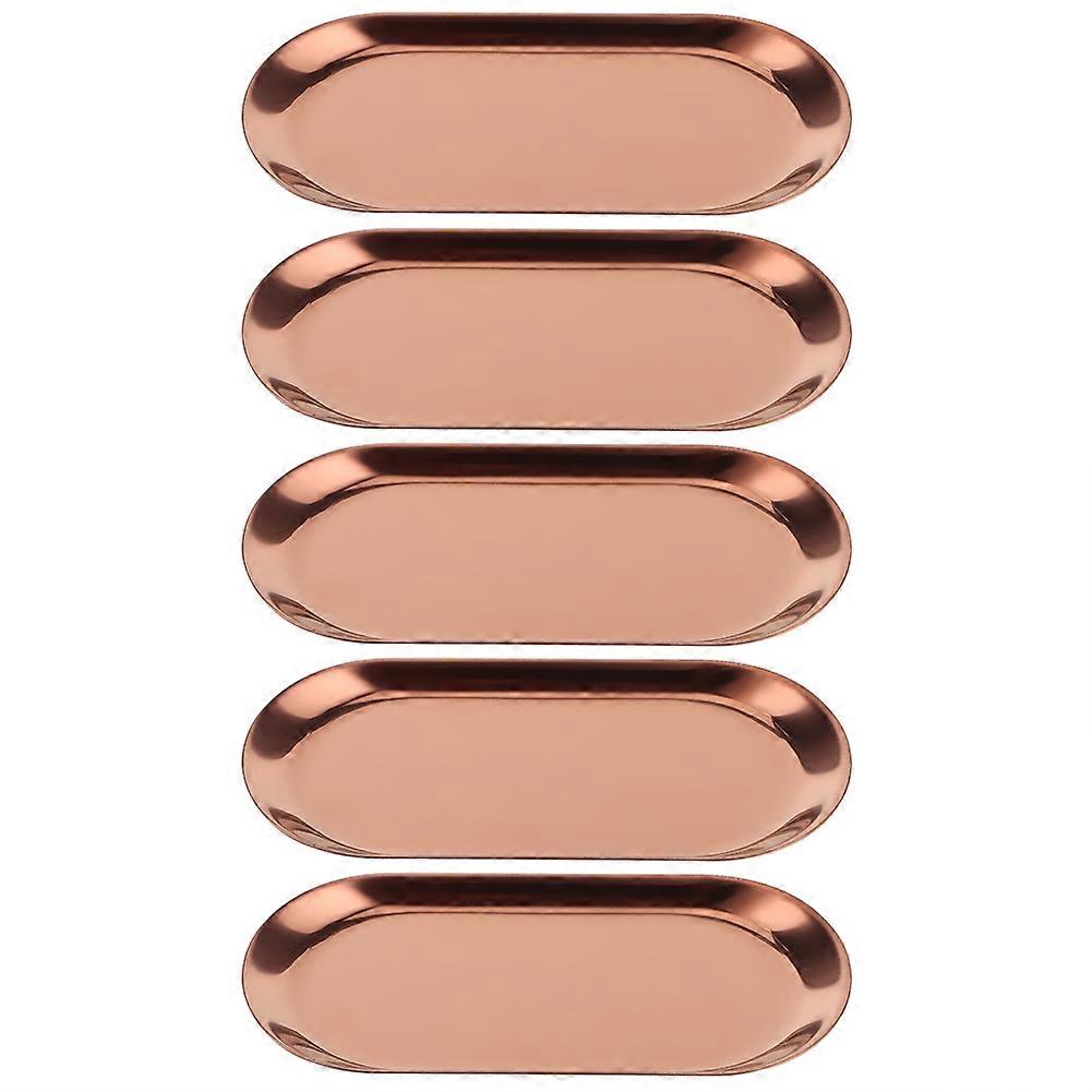 5pcs Stainless Steel Oval Shaped Towel Tray Cosmetics Jewelry Storage Tray Dish Plate OrganizerRose