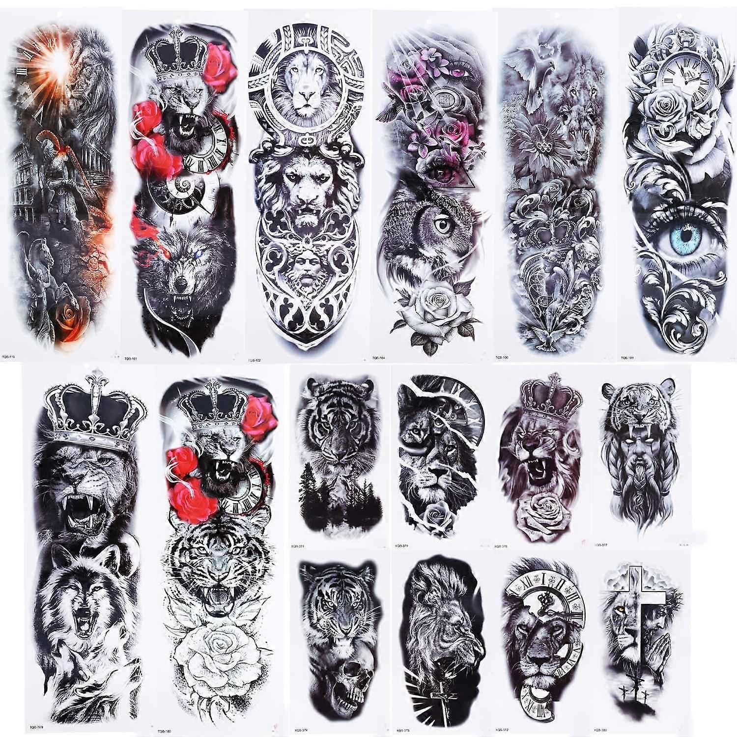 8 Sheets Full Sleeve 8 Sheets Half Sleeve Temporary Tattoos Stickers Watrproof Half Full Arm Fake Ta