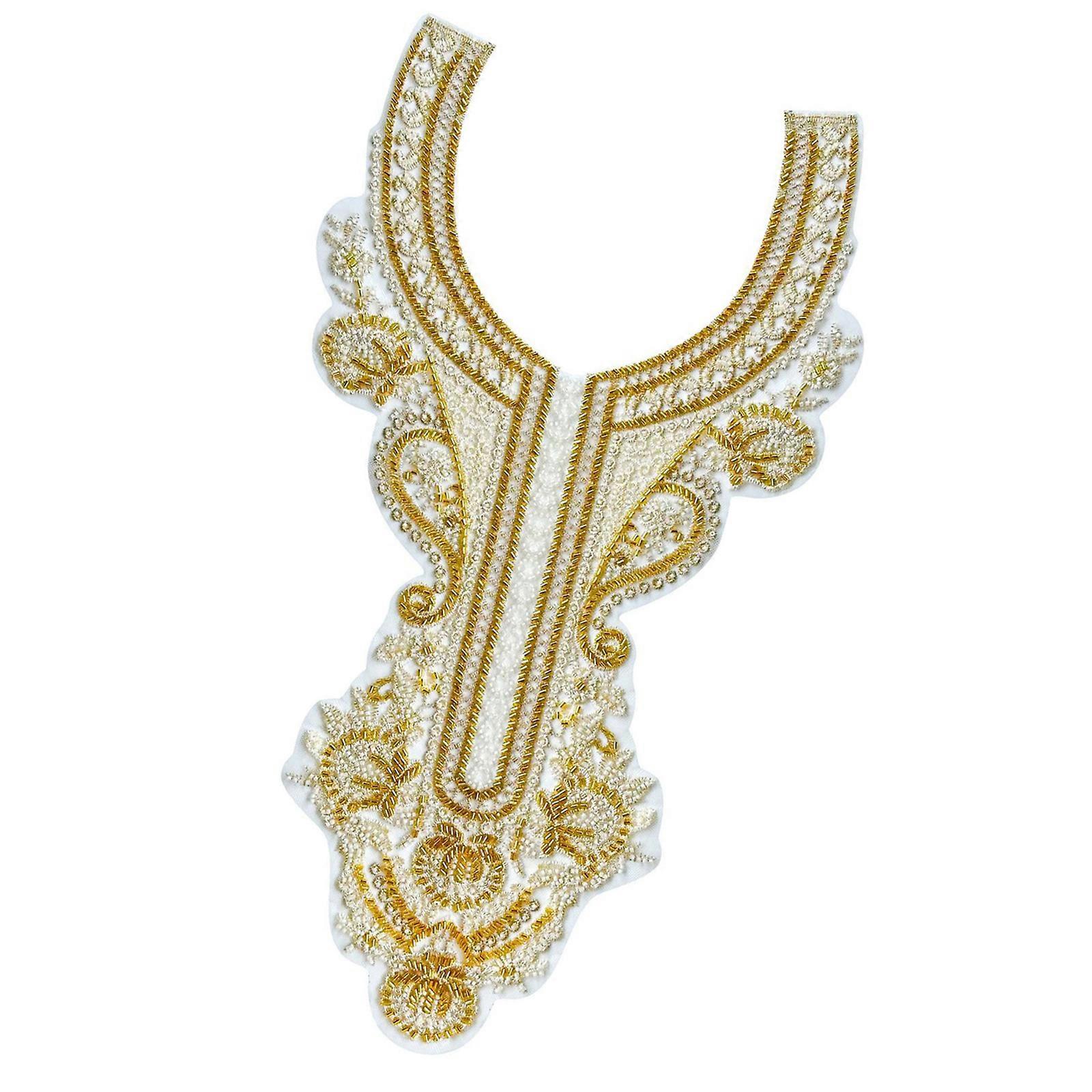Embroidery Lace Beads Applique Sew on Collar Patches Applique Wedding Dress Applique for Wedding Gown Evening Dress Multicolor