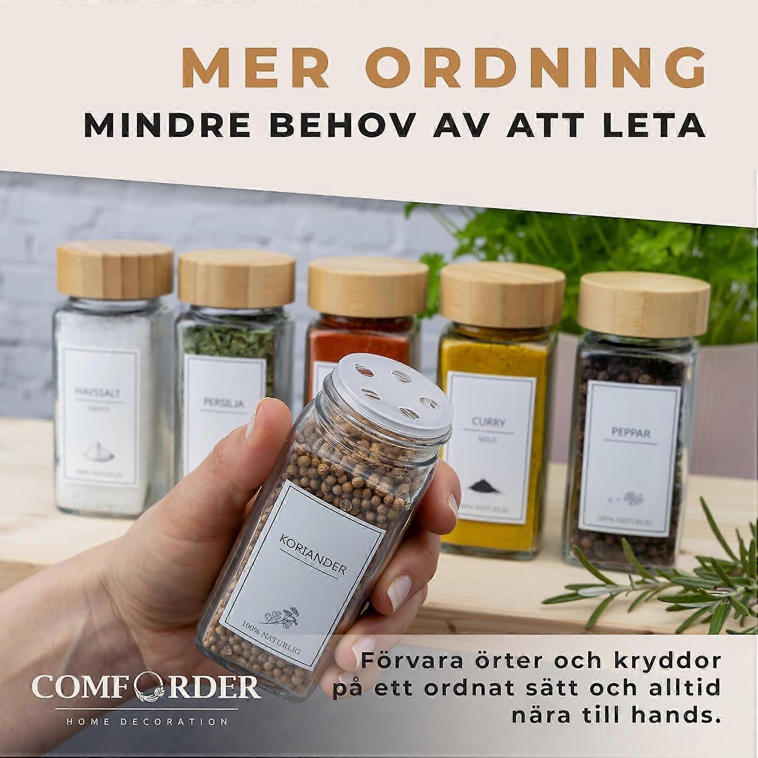 Glass Spice Jars with Metal Lid - 336 Swedish Labels - 24 Pack - 120 ml - With Accessories