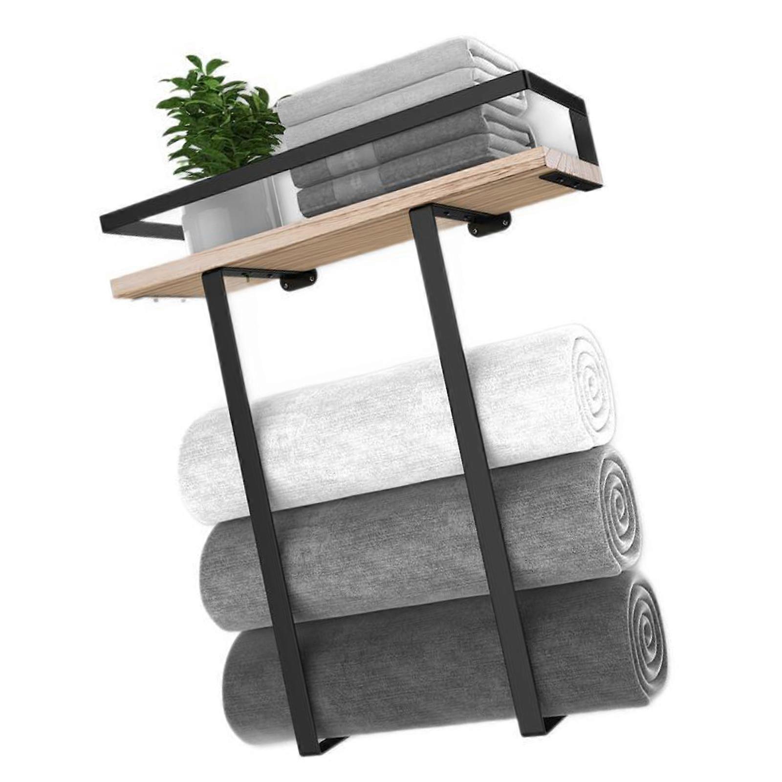 Without Drilling Bathroom Organizers Towel Holder With Metal Basket Waterproof Wood Shelf for Shower Accessories Multicolor