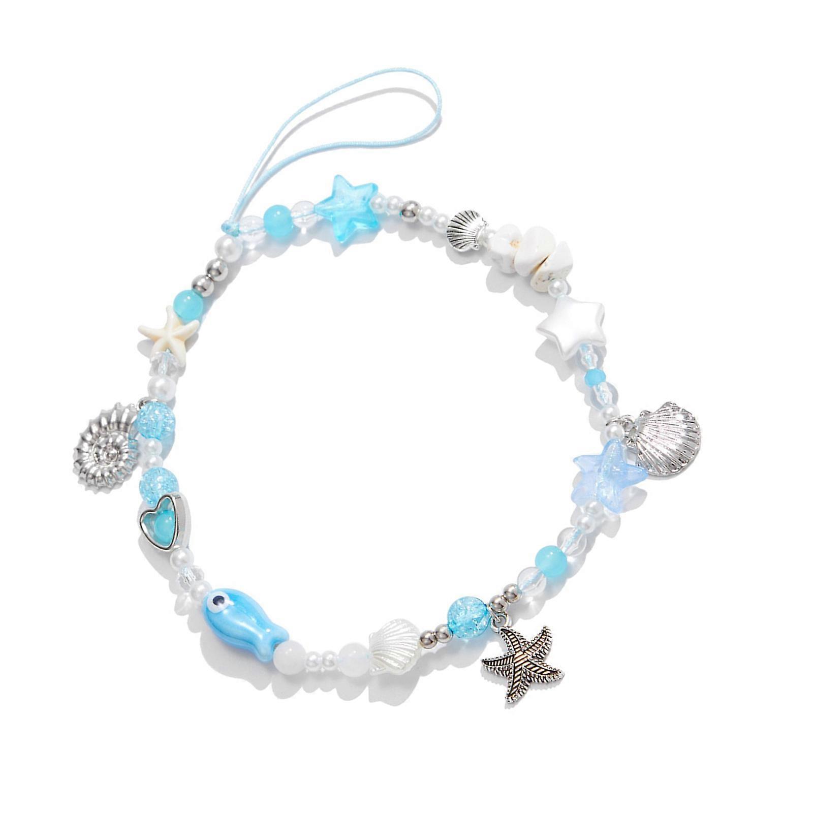 Elegant Coastal Inspired Mobile Phone Chain Handmade Beaded Cellphone Lanyard Seashells Starfish Pendant Conch Keyring Multicolor