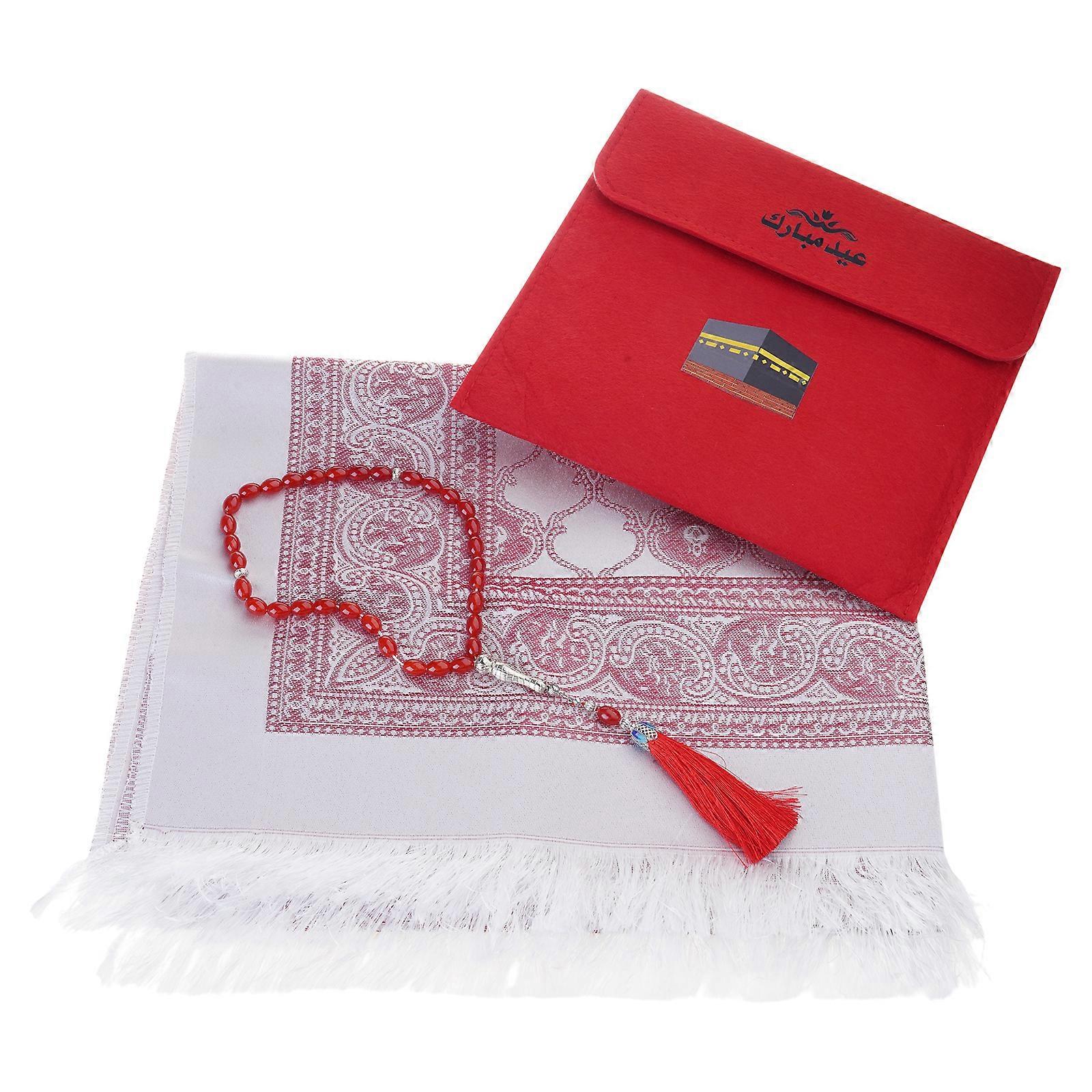 Islamic Prayer Mat With Beads and Prayer Carpet Storage Bag Durability Perfect For Travel Or Home Use Red