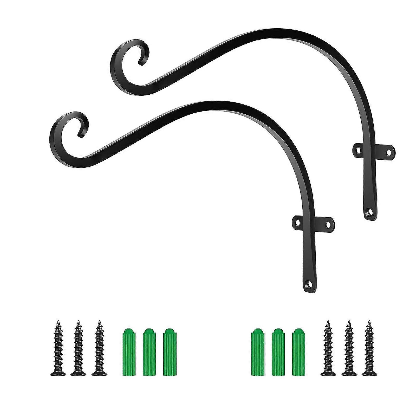 Set of 2 Heavy Duty Plant Hangers Black Iron Wall Hooks for Hanging Bird Feeders Weatherproof Flower Basket Holders Multicolor